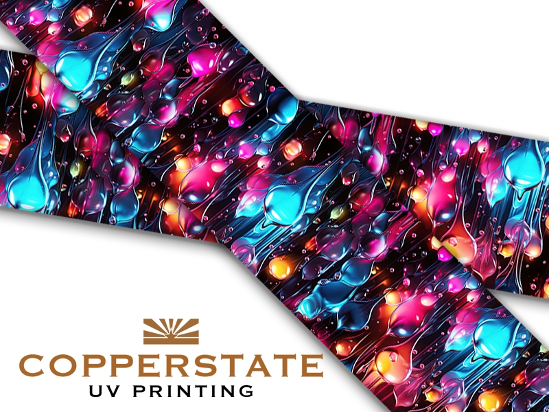 UV inks are applied like any other inkjet printer but the inks are cured instantly with UV lights. This allow the item to be used immediately after printing.