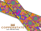 UV inks are applied like any other inkjet printer but the inks are cured instantly with UV lights. This allow the item to be used immediately after printing.