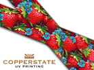 UV inks are applied like any other inkjet printer but the inks are cured instantly with UV lights. This allow the item to be used immediately after printing.