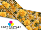 UV inks are applied like any other inkjet printer but the inks are cured instantly with UV lights. This allow the item to be used immediately after printing.