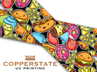 UV inks are applied like any other inkjet printer but the inks are cured instantly with UV lights. This allow the item to be used immediately after printing.