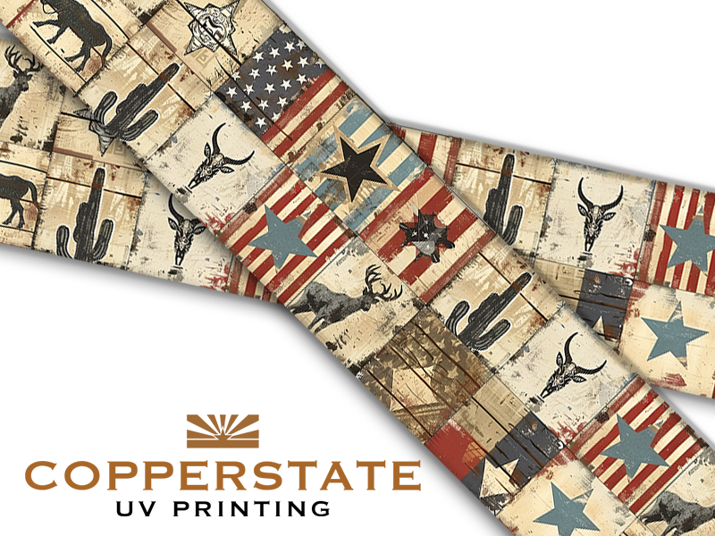 Each exclusive CopperState design is UV printed onto genuine USA made White Beta Standard or Super Heavy BioThane®. Straps are available in 4 widths, 3 lengths and two weights. Available lengths are 29", 39" and 59" and are available printed on one or both sides. If you are interested in custom lengths up to 59", please get in touch with us HERE.