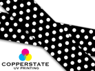 UV inks are applied like any other inkjet printer but the inks are cured instantly with UV lights. This allow the item to be used immediately after printing.